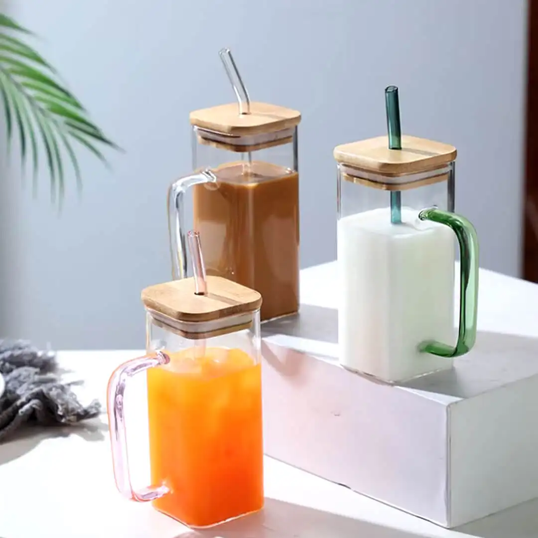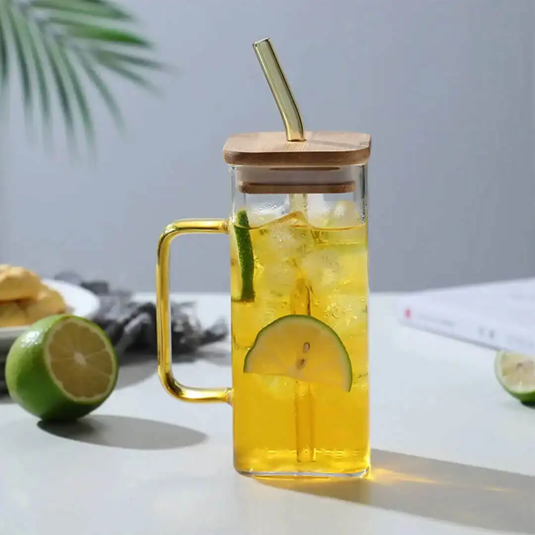 Glass Mug with Lid and Straw