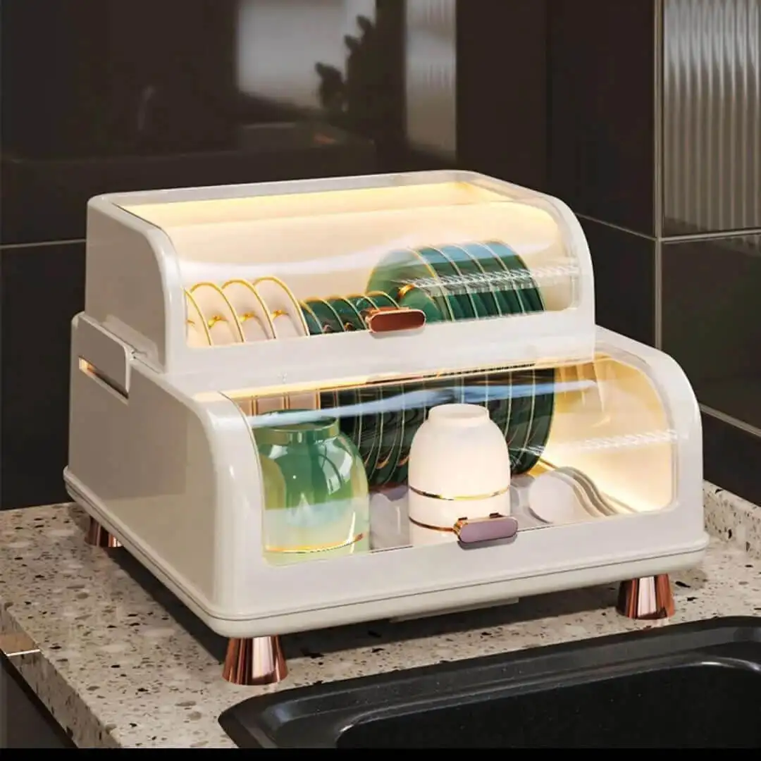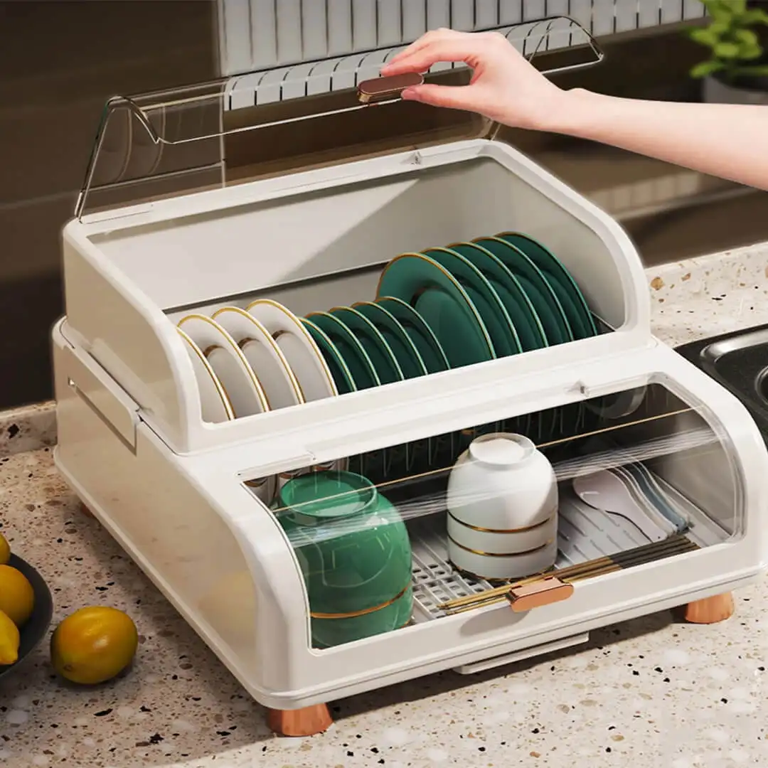 Dual layers Dishes Rack with Lid