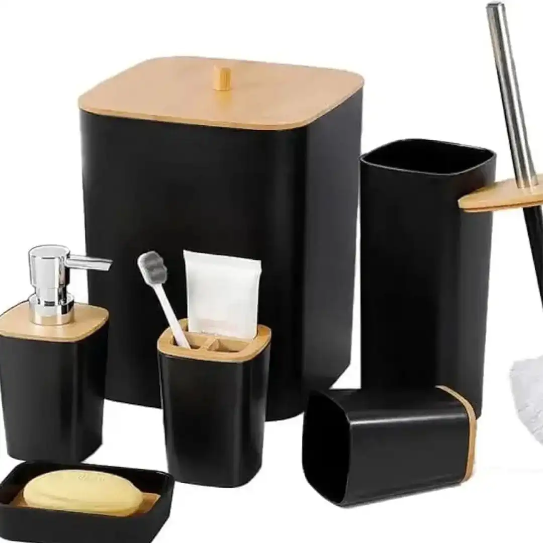 6 Pcs Bathroom Set With Wooden Lid