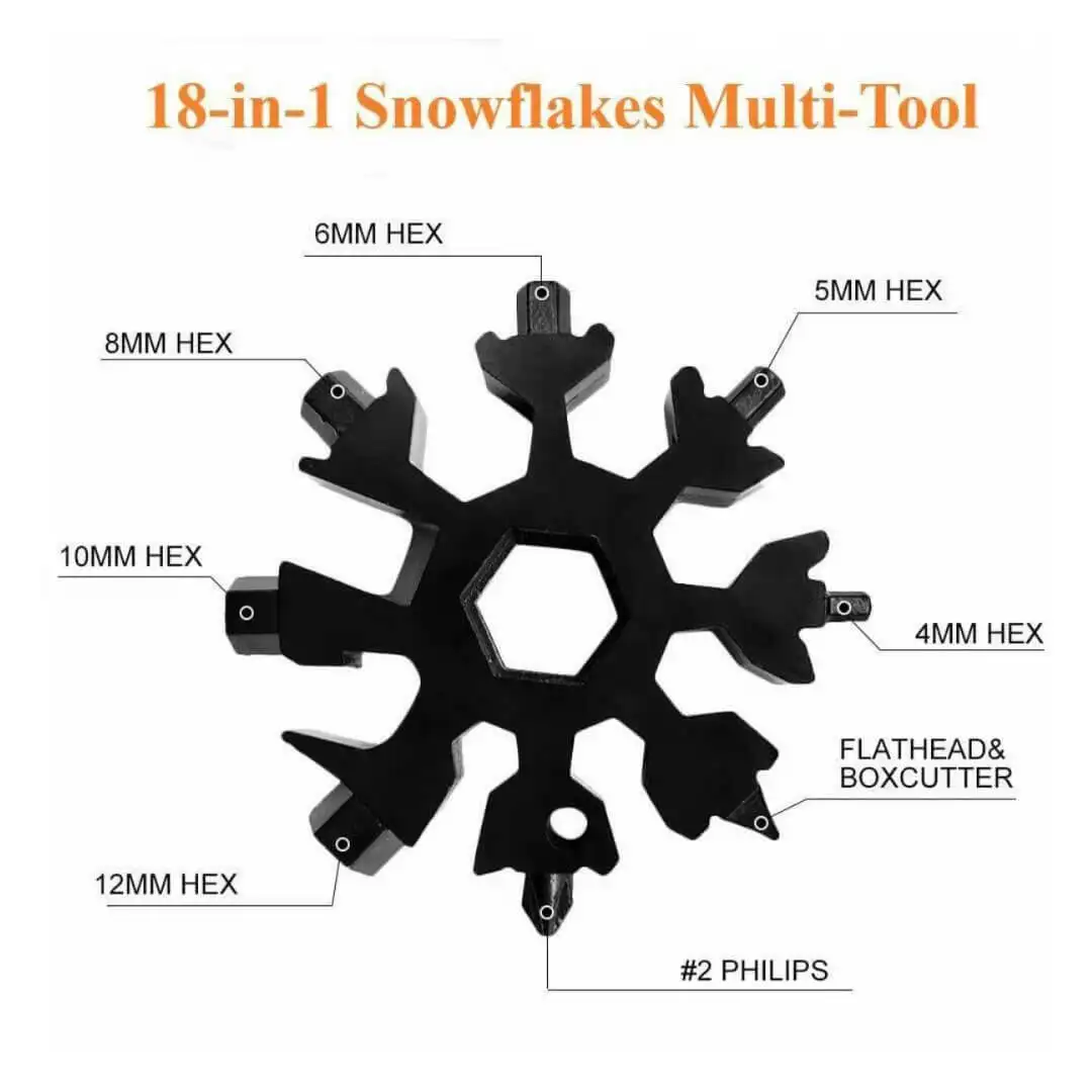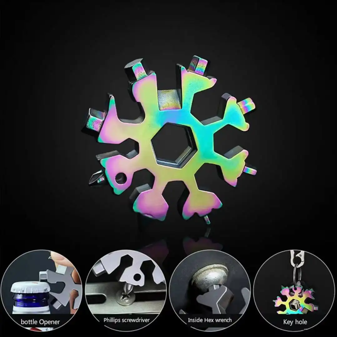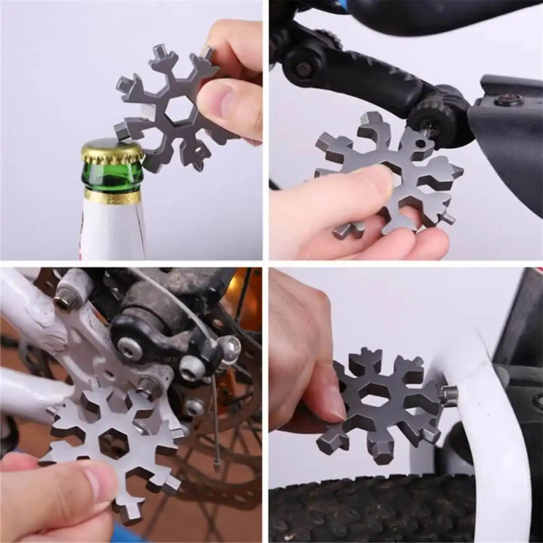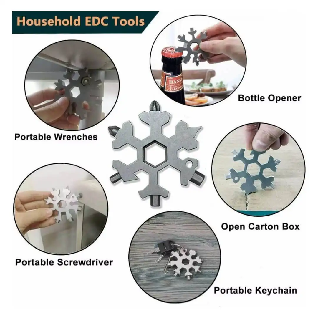 The 18-In-1 Multifunctional Wrench Key. available at Flash Store.pk. is the ultimate compact tool for your everyday and outdoor needs. Designed in a sleek snowflake shape. this stainless steel gadget offers 18 essential functions. including a wrench. screwdriver. spanner. and bottle opener. Its lightweight and portable design make it perfect for camping. hiking. household repairs. and emergency situations. Durable and rust-resistant. this versatile tool is a must-have for adventurers and DIY enthusiasts alike.