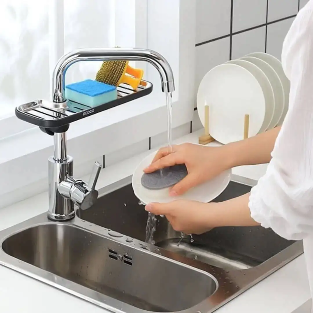 Upgrade your kitchen with the Premium Faucet Rack. available at Flash Store.pk. This durable and sleek rack is designed to fit over your sink faucet. providing a convenient storage solution for your kitchen essentials like sponges. scrubbers. and soap. Made from high-quality materials. it ensures long-lasting performance and rust resistance. Its space-saving design helps keep your kitchen tidy while offering easy access to your cleaning tools. Perfect for anyone looking to enhance their kitchen's organization and functionality.