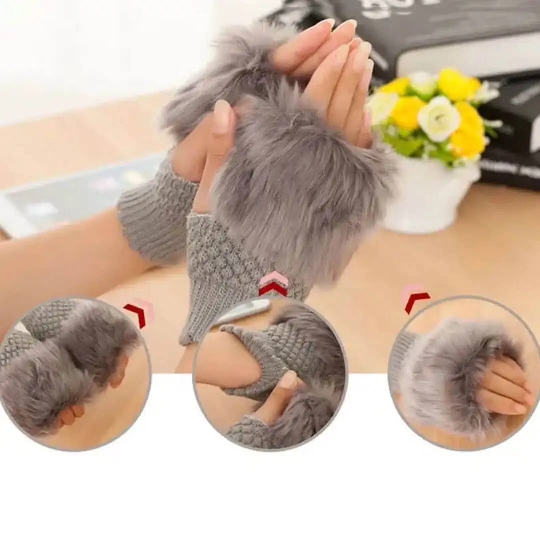 Winter Fluffy Fingerless Gloves